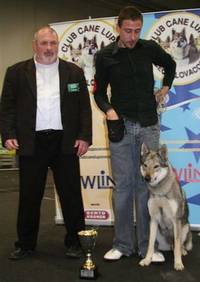 La giudice Gabriela Ridarcikova insieme a uno dei fondatori della razza "deda" Rosik premia i più belli lupi cecoslovacchi dell'esposizione.Per me come allevatore era l' emozione più grande vedere Frantisek Rosik premiare i soggetti del mio allevamento.Il compito a scegliere i 6 più belli non era facile e non credevo ai miei occhi quando fra i primi 6 sono stati scelti 4 soggetti Arimminum -1°classificato Arimminum Krimhilde -2°classificato Arimminum Big Wakan Wolf -3°-6°Arimminum Olcan e Arimminum Penelope!!!!!!!!!